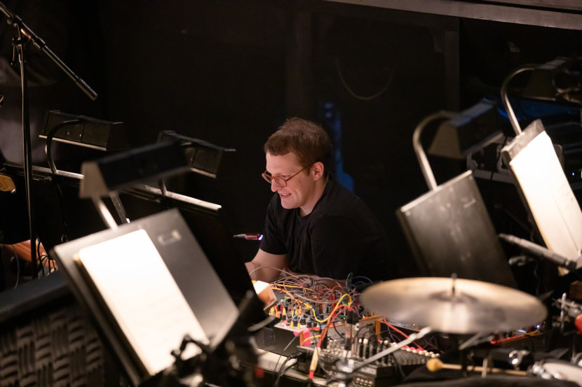 The piece itself creates new challenges for a conductor. I must hold the orchestra together and remain responsive to the dancers, as always. But I must also function as a kind of bridge between the acoustic and electronic worlds, listening not just to the players in front of me, but to the soundscape surrounding all of us. There are times when I have to put on headphones and conduct to a click track to coordinate with Sam, and at others, I have to conduct complicated purely orchestral music whilst also giving visual cues to the stage managers so that they can call their own cues on my beats. It’s an exhausting experience. It’s a little over an hour long, but the first performance felt like I’d run a marathon by the end!