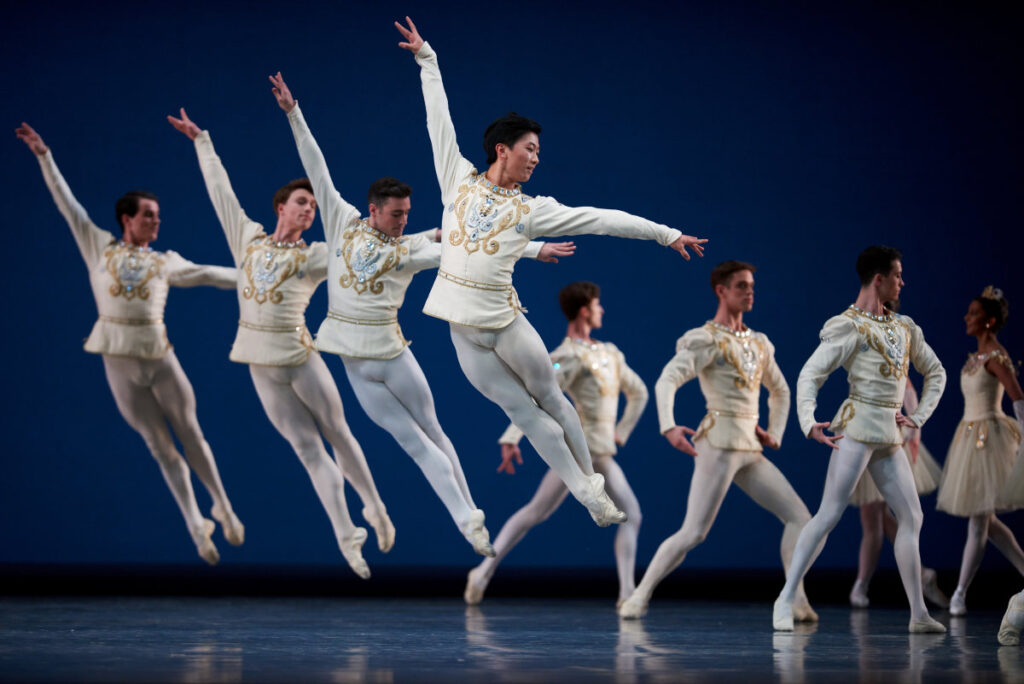 The ballet’s music is a symphony by Tchaikovsky (with the first movement omitted) and although this score was not originally composed to be danced to, Balanchine imbues it with all the regal classicism of beloved works such as Nutcracker and Swan Lake. Unlike these narrative ballets, however, Diamonds does not have any explicit story, allowing the dancers’ artistry itself to take center stage.