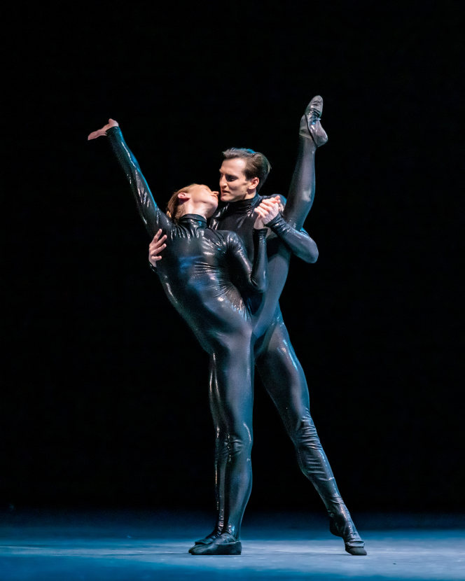 A fundamental moment in Mere Mortals is the lengthy pas de deux between Pandora and Epimetheus, which takes place towards the end of the ballet. Stahl and Garrison describe it as something beyond a romantic duet, the unearthing between two valiant, curious characters. What begins as discovery deepens into something unfiltered, genuine, and sensual, their movements natural, raw, and rooted in mutual trust.