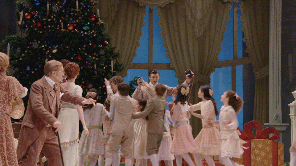 At the start of the party scene, Clara’s father plugs in the larger-than-life Christmas tree, a truly magical display for children of that era. Electricity in homes was not common until the 1920s-1930s, so this special showcase of electric Christmas lights is a nod to the period and the decadence of the Stahlbaum’s household.