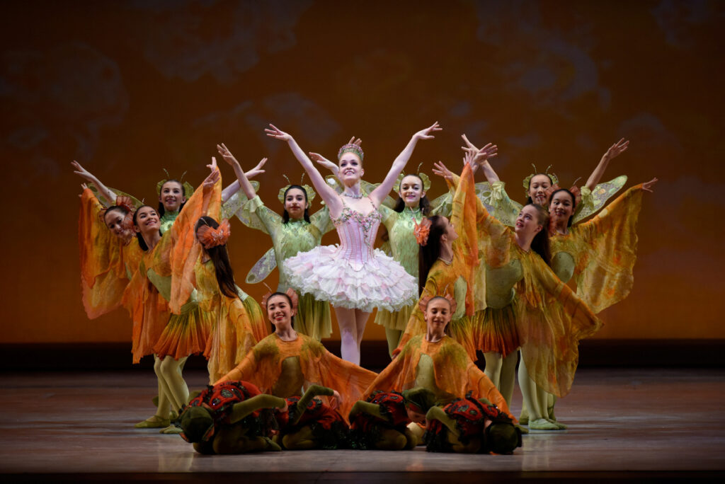 The Sugar Plum Fairy welcomes Clara and the Prince and asks them to tell her about the adventure that brought them to her world. The Prince recounts his tale of war with the King of the Mice and describes Clara’s bravery. The Sugar Plum Fairy commands a festival filled with dancing to honor her guests.